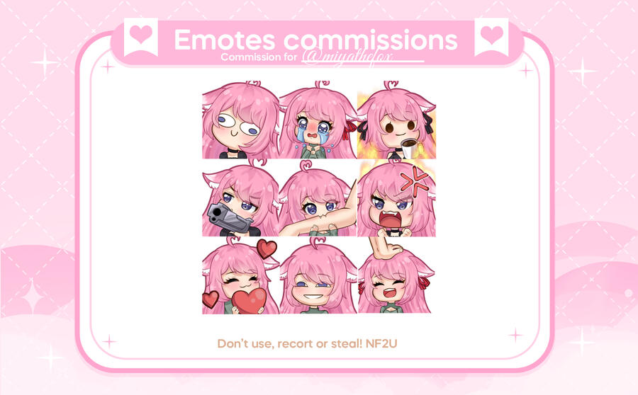 Posso fazer de tudo que me for pedido, e ainda pretendo adicionar novos serviços como emotes animados, página de mangá, ilustração pra animar, etc...